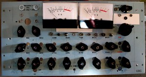 this old pilot oscillator unit is useless. i got it from an auction with some other treasure and boat anchors. it’s perfect for a mixer. 8 channels. volume. pan. mute. the neve b535 board will be the pick up amp. its going to be very simple. fat & clear. the all transistor neve boards are stunning. i’ll add a control room monitor section and twin microphone/instrument preamp. quite the complete juicy front and back end in one beaut box. the two upper photos are of a mock layout and of the new panel ready for clear coating.