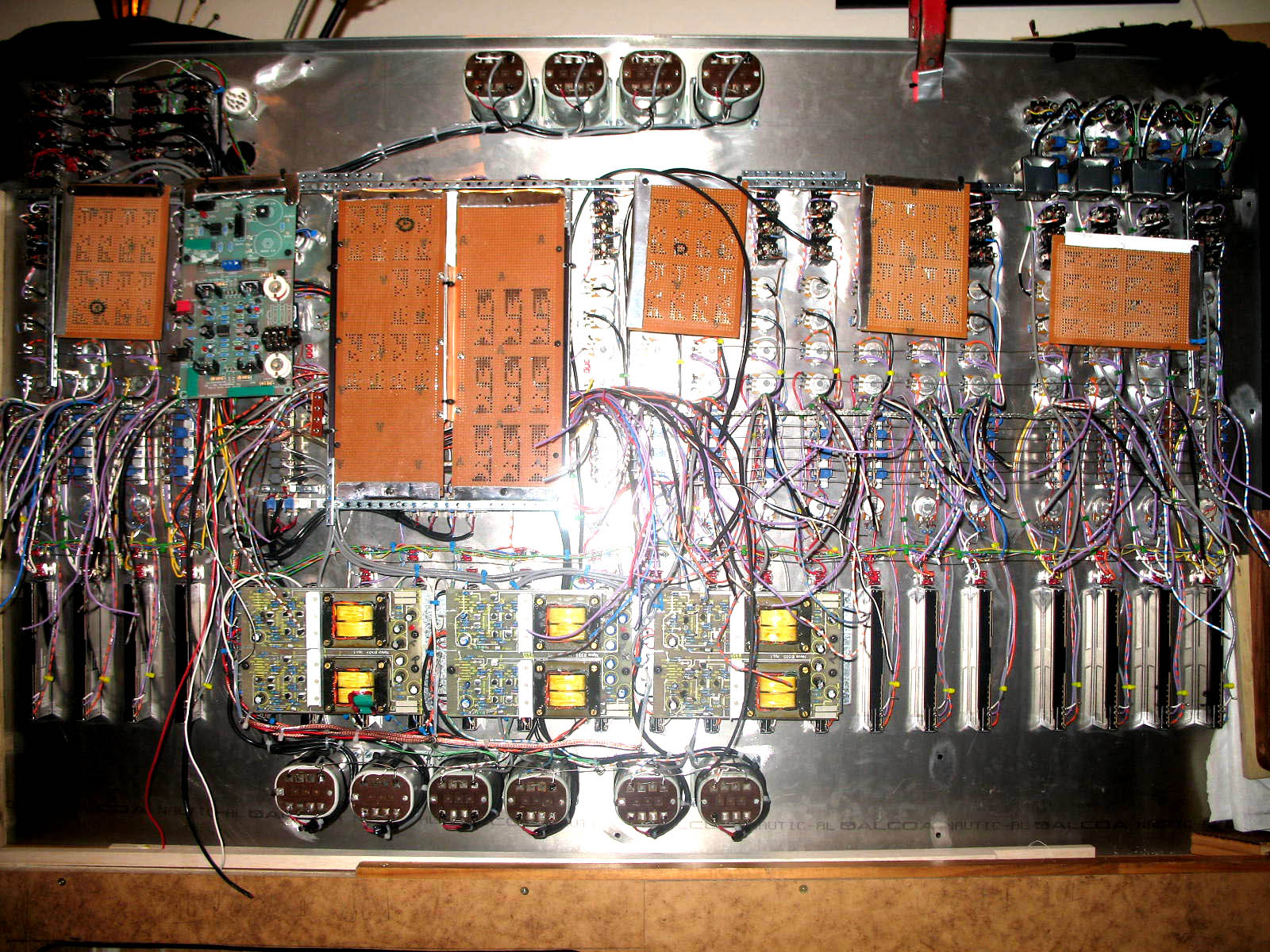 virtually all the console wiring and isolating transformers are in place now, ready to attach to the amplifier circuits. a total of 64 operational, preamp and output stages. ive made up the circuitboards and edged them and placed them all into the console frame to try them on/in for size and ergonomics. this next week will see the boards populated and tested.