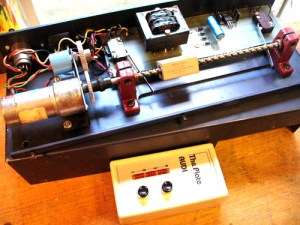 this is the remote damper actuating mechanism that i have . its quite a thing well made. the dc motor drives the screw so that the block moves along it. the direction of the screw/block is determined by which button is pressed on the remote. it just changes the polarity feeding the motor. the block would be attached to an folding arm mech which brings a big polystyrene baffle closer or further from the plate. when the block has shifted to either end .. it operates a motor cut off switch so nothing gets damaged. the blue potentiometer attached to the motor gearing adjusts a sense voltage back into the remote so as to indicate a reverb seconds time on the 16 led display.