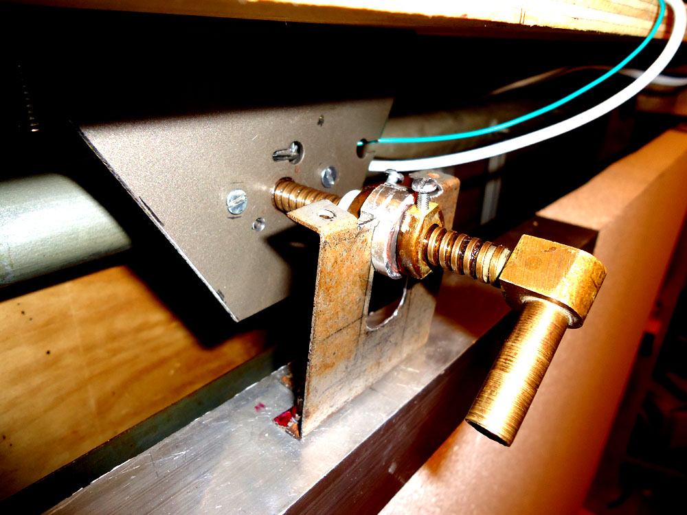 and then a funky issue requires an innovative solution – we wallow in that soup til the screamingly obvious thing smacks us in between the eyes. powerful shit actually. then igor has let loose and made this bafflelator mechanism. out of a twirly screw thingy from a edwardian window adjustor and a chopped off corner of 70s turntable. the mechanism moves the whole 40mm polystyrene baffle from quite distance away – to hard up against it. interesting. so the plate is totally a winner now. can do very natural dirty realistic warm reverberation in many dimensions. he also has a very searing short short delay setting . phazing almost. hard as a nail direct across the plate. a freakingly dynamic effect. – a welcome addition at the coalface. i’ll add some good soundfiles to this post asap. it really sounds awesome.