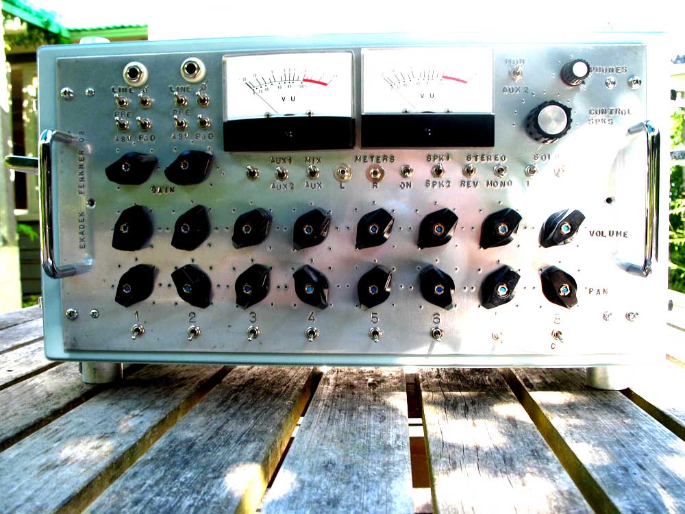 now that that is that sorted . another best thing is .. they are so easy and loyal. they dont go on strike. they dont run off with the family silver. they are a decent fair price of only 1200$nz (check your currency calculator for that one) for a beautiful new zealand handmade thing . for a minifenk1 . ( freight to be arranged). gets basic stereo 3 line input 3 output transistor amp active monitor control room dog. with stereo-reverse .stereo-mono. solo left. solo right . knobs and metering and options are available for discuss.