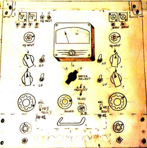 an australian client has ordered this stereo MB1 chassis – versus – my sweet lady tube 2 way EQ . a great combo . he has supplied a beaut old ‘skin’ tolex covered ferrograph tape recorder case for it . so im going to make this stereo mic/di/eq amplifier into that – complete with on board 5 watt tube amp and the original 9X6 inch goodmans monitor speaker. the new dual pultec MB1 tube mic amp will have variable input impedance. 30.150.600 ohms . alex has some real old ribbon mics . and wants extra tonal front end augmentisation capability in general. the big old meter switches between the two preamp outputs. as does the EL84 single ended tube P.A. amp. the 2 way tube equalizer features as the MB1 alternative input source. reverse engineered design from an american roberts (or rogers) stereo system. a unit that i repaired once really impressed me. the eq sound was so fat and deep. a very particular circuit built around the feedback of a single valve amplifier stage. ive added a preamp stage to it to enable an effective rumble filter, and hi/lo frequency switches to the bass and treble stages to complete this massive sounding 2 way eq adjustment scope of this ferral graffa transportable 2 channel studio preamp unit .