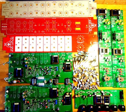 a client had purchased a heap of black lion audio gear . he has liked the sound from the units – and reckoned they represented quite good ‘sonic trustworthy’ value — except for the build quality and control component (pots) quality and robustness. dam cheap little things. busted and broken after only a bit of use. i discovered that quite alot of them weren’t even soldered in … like – at all at all- just sitting there ‘plugged’ into the board – no soldering. w.t.f. anyway… after he’d tried my gyrator ten8tor luxury stereo eq (loved it’s sound and quality) he decided to have me turn his dual mono black lion gear into stereo control stuff . wow. i did not see that coming. crazy? yes! dumb? no! so far i’ve stripped the mono parts off the black lion boards. and prepped some metalwork and collected the strange value stereo pots and parts.