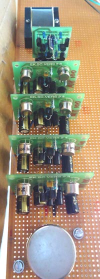 the cat visconti gogo prototype channel is completely rocking. but it looks a bit strange. it is just the test bed of amps so far. even with its all unshielded looopey connecting wires and floating switches, the sound is crystal clear and clean of noises or interferences. the trident tsm 4 way -with filters eq design is turned backwards and inside out. now the H.F has new mojo from coming first on top. the L.F needed utter lobotomy. the old chip band pass sweeping eq is changed out for a simple tough and tight 5 freq shelf eq. (neve 1080) much better bass control with no lumps.
