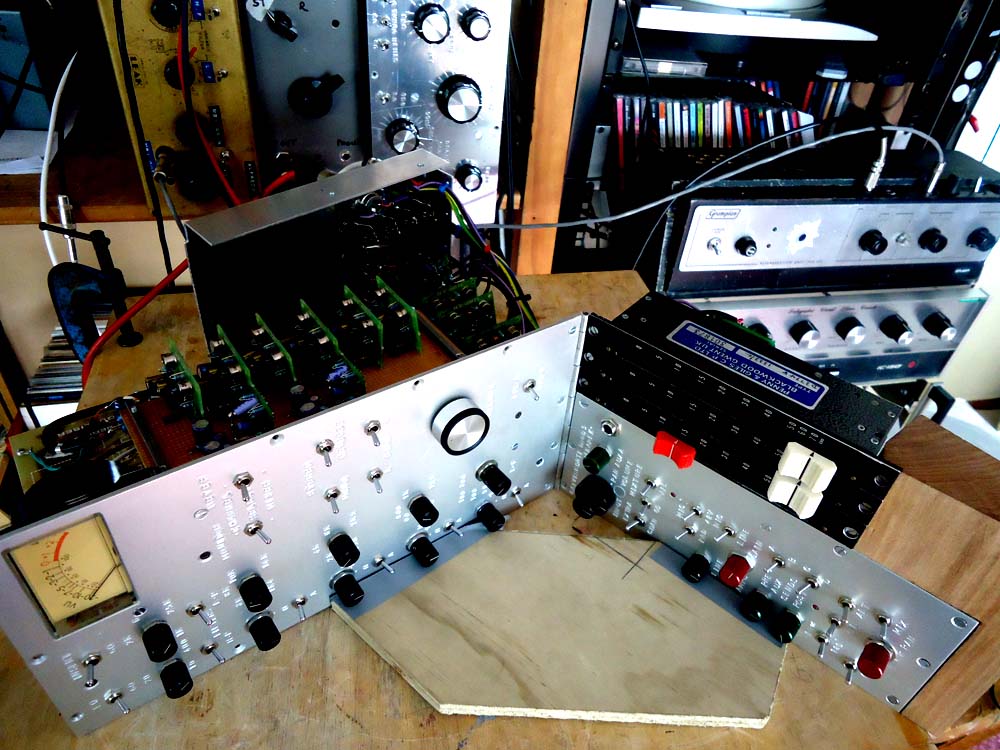 mind altering breakaway holiday? no freaking way. the wiring is set and a power supply is made and its been running perfectly hot! . after sorting a couple of easy sorted errs. (its kind of difficult thing to photograph cos it lies on it’s side. spooning). really does work well tho. set to try it out in karaoke session with the family over next few days. the mic amp sound is so fat and quiet with mountain ranges of gain. the eq with its new backwards and flipped out order is richer and precise and more equalizer power full. ….. and YEP i have indeed made a most awesome karoke mixer . hooked up my old grampian spring reverb to the cats fx send and return, and wow. so good. theres at least a couple of jammed albums in this rig .