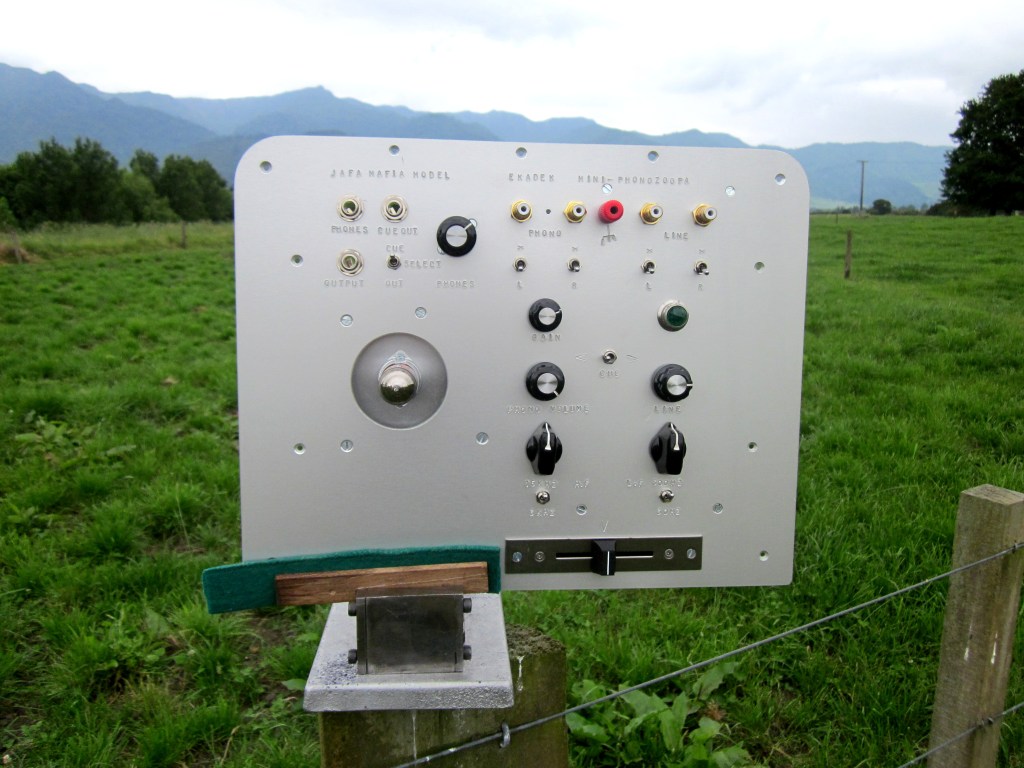 getting back to a simple preamp . this PHONOZOOPA-MINI. sweet and fat 4 stage fet-tube-transistor phono preamp. no!chips. all transistor amplifiers thru the line input amp – post Xfader mix amp – 2 stage neve eq – cue output and headphone amplifiers. an astounding sound clear and dynamics like 3D . the pictured mini – zoopa is mono – the left and right sides of the phono and line inputs are selective mixed . then all the processing and output is a single channel. it’s made for sound system minimalists. so that it can be just 2600 nz$. a luxury stereo model is only 4700 nz$. optional – a mono model (pic) built-in with sub.kick.mid.hi.super hi xover amplifier. the means to control a 4/5 way one trillion watt stack . xover is all transistor. no!chips. 4900 nz$.